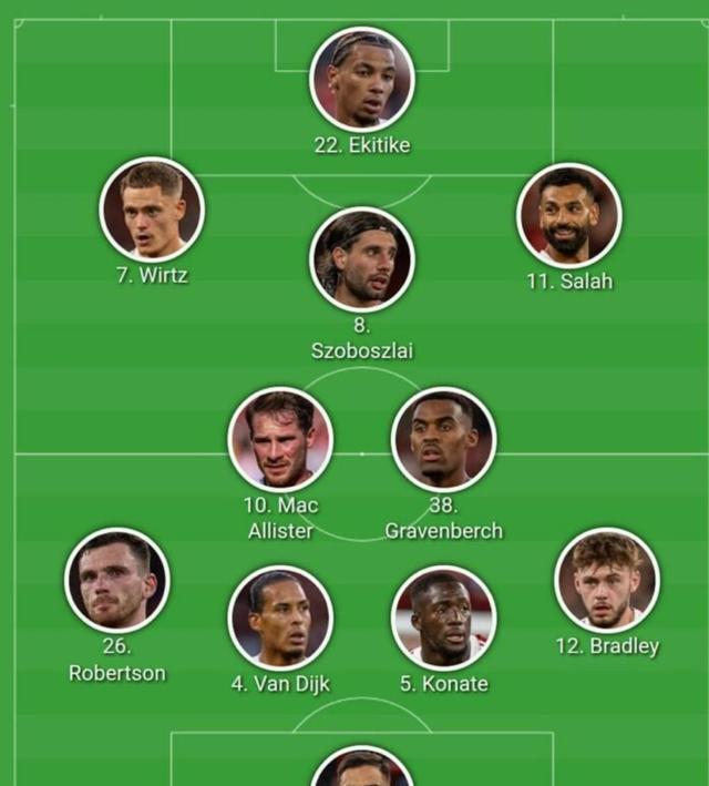 斯洛特沿用了周中击败皇家马德里的首发阵容,弗洛里安?维尔茨继续占据左路位置。亚历山大?伊萨克伤愈回归球队大名单,但在比赛大势已去的情况下未能获得登场机会。