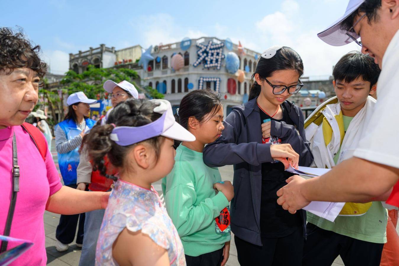 活动现场,一抹抹“志愿蓝”格外醒目。阳光海南旅游志愿服务队的志愿者们身着蓝马甲,与中共海南省旅游行业联合支部委员会的全体党员一同坚守岗位、主动作为,积极开展志愿服务。党员志愿者们纷纷亮出党员身份、佩戴党徽,设立咨询服务岗,耐心细致地为游客解答交通路线、景点预约、美食推荐等各类问题,用专业与热情为游客排忧解难。同时,志愿者们还精心准备了椰子糖、矿泉水等物资,免费发放给过往游客,让大家在游览之余,感受到浓浓的新春暖意。