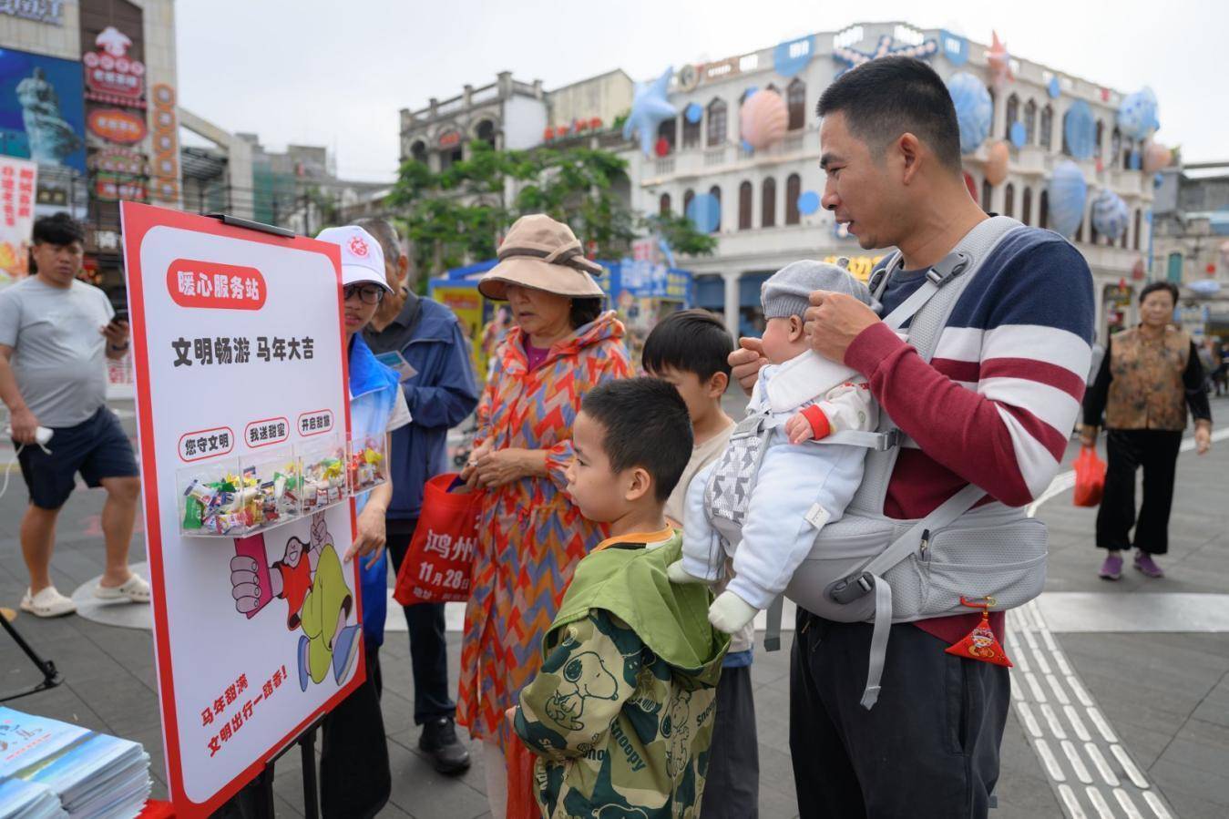 趣味十足的互动游戏成为现场最吸睛的亮点,三大特色游戏让游客在玩乐中传递文明、收获喜悦。在“新年挂承诺”区域,游客们有序领取新春贺语承诺卡,写下自己的新春心愿与文明承诺,“文明出游,不负美景”“马年顺遂,友善互助”“诚信游览,守护骑楼”等字样温暖有力。书写完成后,大家亲手将承诺卡悬挂至指定区域,密密麻麻的承诺卡随风摇曳,形成一道独具特色的集体新春承诺景观,氛围感拉满。