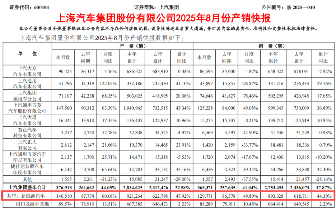 8月,上汽集团的新能源汽车销量达12.98万辆,同比增长49.89%;吉利汽车的新能源汽车销量达14.74万辆,同比增长95.20%。