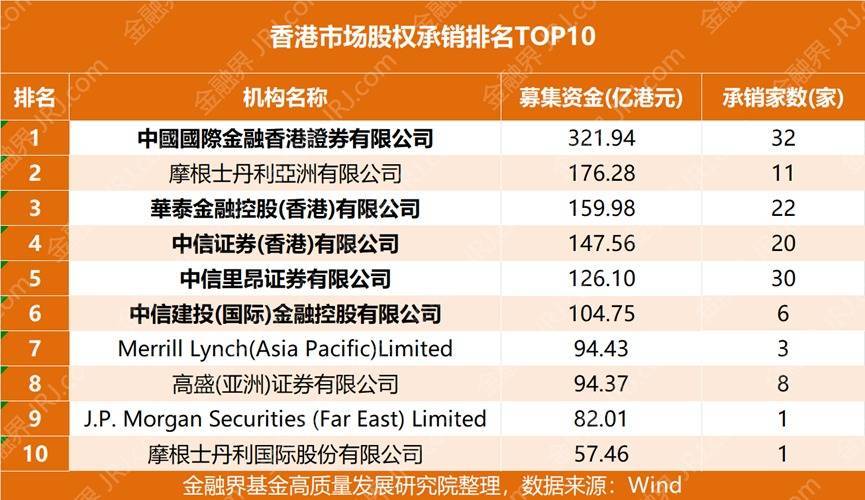 具体来看,中金香港证券以募集资金321.94亿港元和承销家数32家位居首位,其募集规模较2024年全年增加超80亿港元,承销家数增加8家,显示出强劲的增长势头。